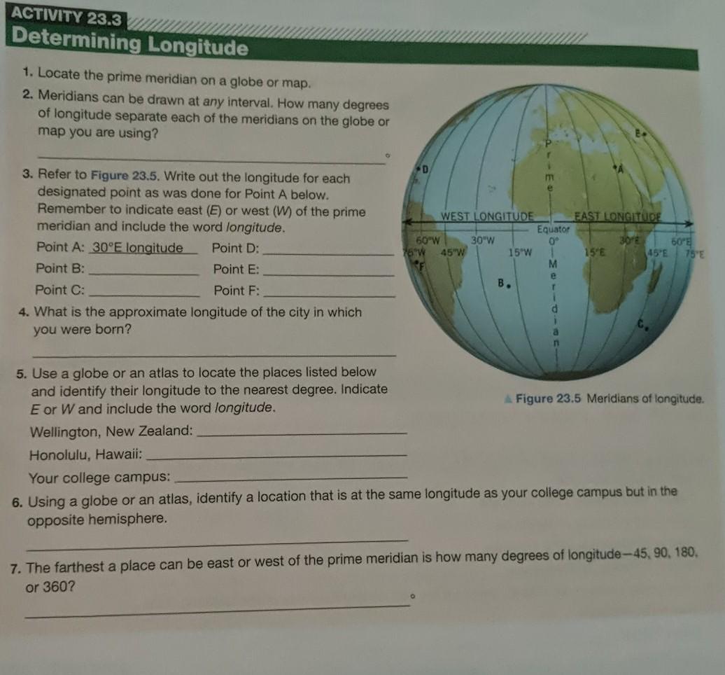 Solved Activity 23 3 Determining Longitude 1 Locate The Chegg Com